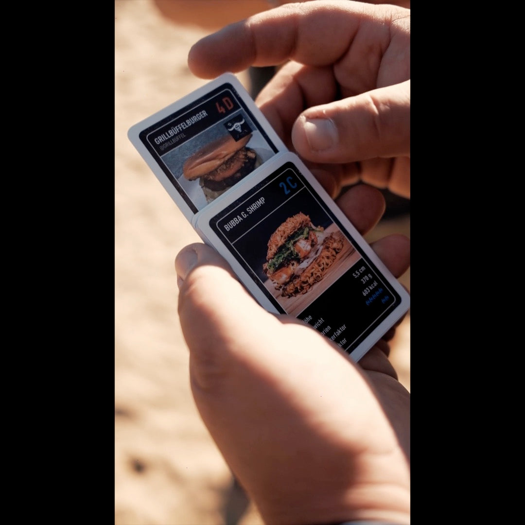 Du kannst aber auch alle Burger nachgrillen und vor dem Spiel genießen. Denn wer dieses Quartett Kartenspiel hungrig spielt, ist selber schuld. Spätestens nach dem ersten Stich setzt der Speichelfluss ein...