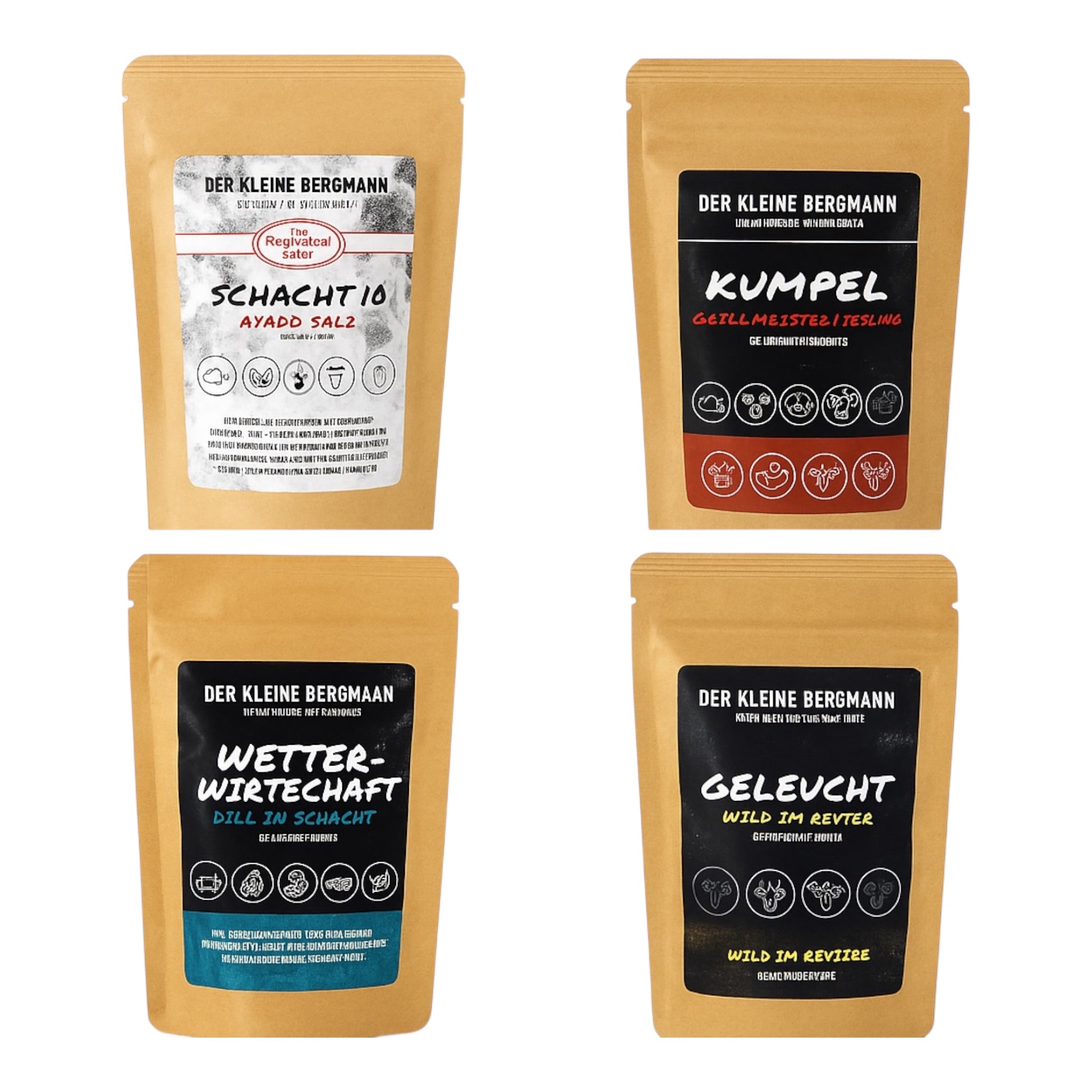 - Sorten auswählen: Wähle im Produkt einfach vier Gewürzmischungen aus den verfügbaren Sorten.